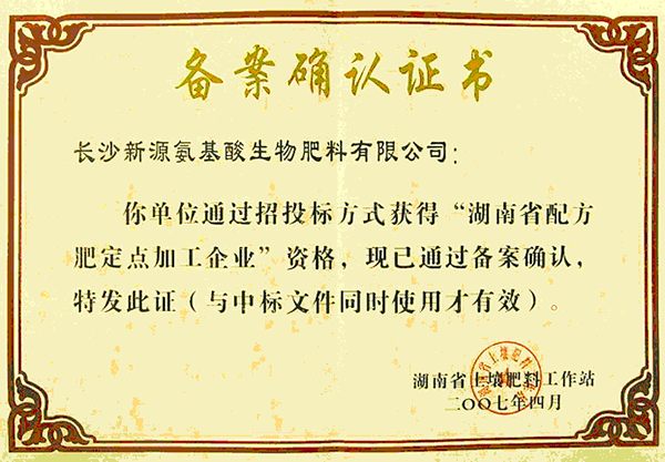 公司是高新技術企業,目前擁有六項發明專利、六項實用新型專利、研發的兩項致力于土壤修復工程的發明專利已經投入生產,尤其是加酶系列肥料生產技術,屬于國內首創,國外亦未見報道。 公司研發隊伍由專利發明人、總工程師負責,有原寧鄉農業局土肥站長和資深化學分析專家與化工專業研究生、組成公司研發小組,技術水平極具競爭力。 幾年來,與北京農大合作取得ECOCERT國際(美國與歐盟)有機認證、與隆平高科合作研究酵素菌種的對比應用,與普洱茶葉局及云南熱作學院合作,研究普洱茶專用肥料,公司自主研發的還有活性多肽水溶肥和固化處理畜禽糞消除污染的天然有機肥及土壤修復活性有機肥。公司的研發成果已經大面積推廣,獲得了豐厚的經濟回報。